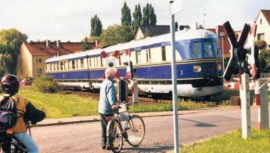 Ein seltenes Bild: 1995 passierte der ehemalige Repräsentationstriebwagen des DDR-Verkehrsministers an zwei Tagen den Salzwedeler Bahnübergang Hoppestraße. Er hatte Geschäftsleute an Bord.