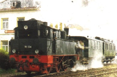 Die Dampflok 91134 mit historischem Wagenpark am 8. April 1994 bei der Abfahrt vom Kalbenser Bahnhof nach Hohenwulsch. Acht Jahre zuvor verschwand die Verbindung nach Salzwedel aus dem Fahrplan.  Fotos: Bodo Habermann