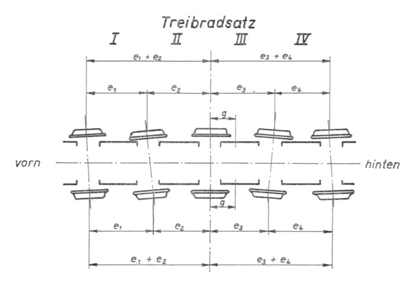 der Abstände der Kuppelradsätze von dem Treibradsatz