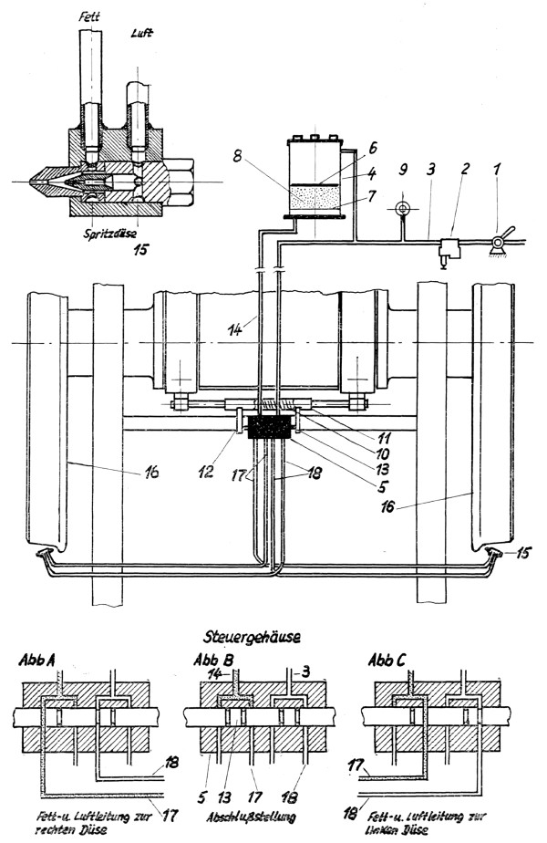 Bogenlauf-gesteuerte selbsttätige Spurkranzschmierung Bauart Heyder