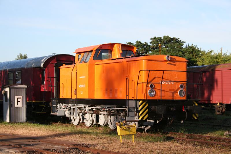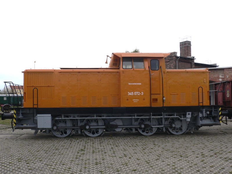 diesel locomotive 345 072-3| Builder: | LEW Henningsdorf | | Type: | V 60 | | Constructed: | 1977 | | Works number: | 15603 | | Power output: | 650 PS | | Maximum speed: | 60 km/h | | State: | Exhibit |