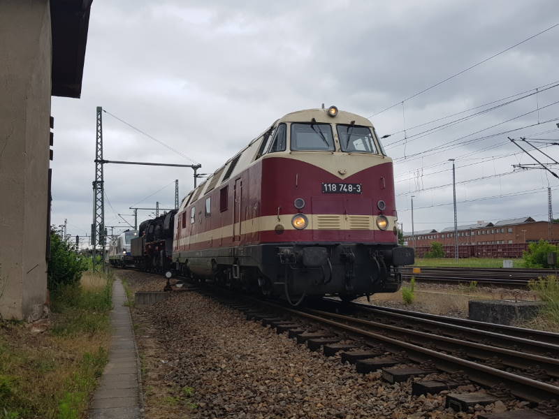 After a longer period of idleness, diesel locomotive 118 748 was allowed to show once again that it's not dead yet. The new owner of the locomotive had agreed and a railway inspector had previously certified the orderly condition of the machine. So it was put into service for the parades.