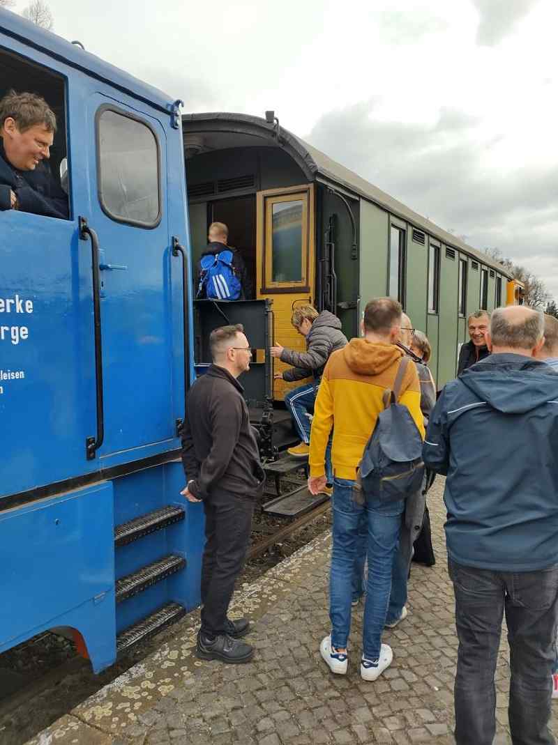 Already in the course of the last week, some of our vehicles had some run-out. Our two class V22 diesel locomotives hauled a short special train through the port of Wittenberge. The occasion was the retirement of a railwayman from active service.