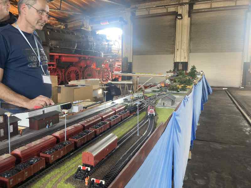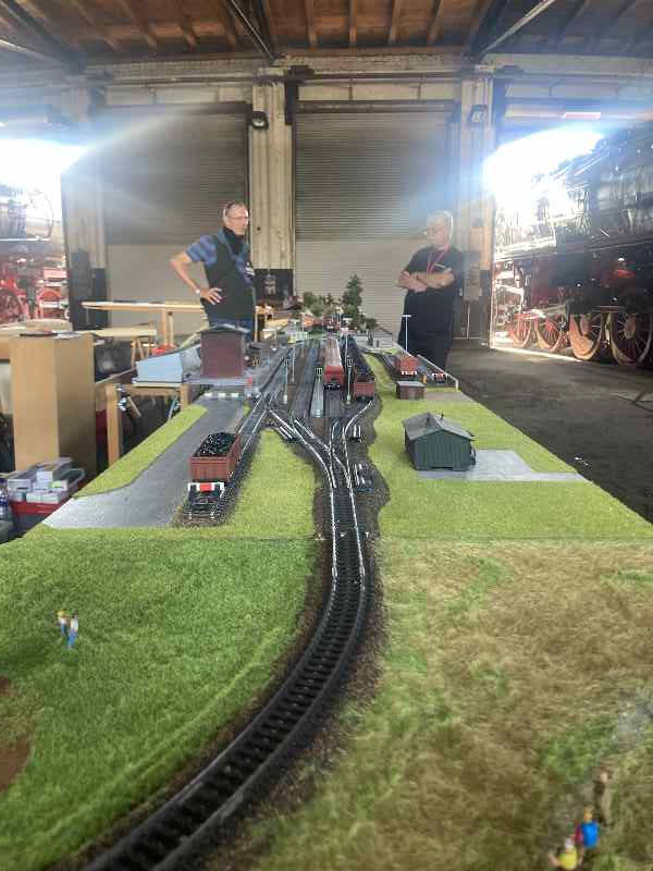 As a highlight, our colleagues from the "little railway" in Lower Saxony assembled parts of their model railway this time. We had cleared a track in the locomotive shed so that they could build their layout under the roof.