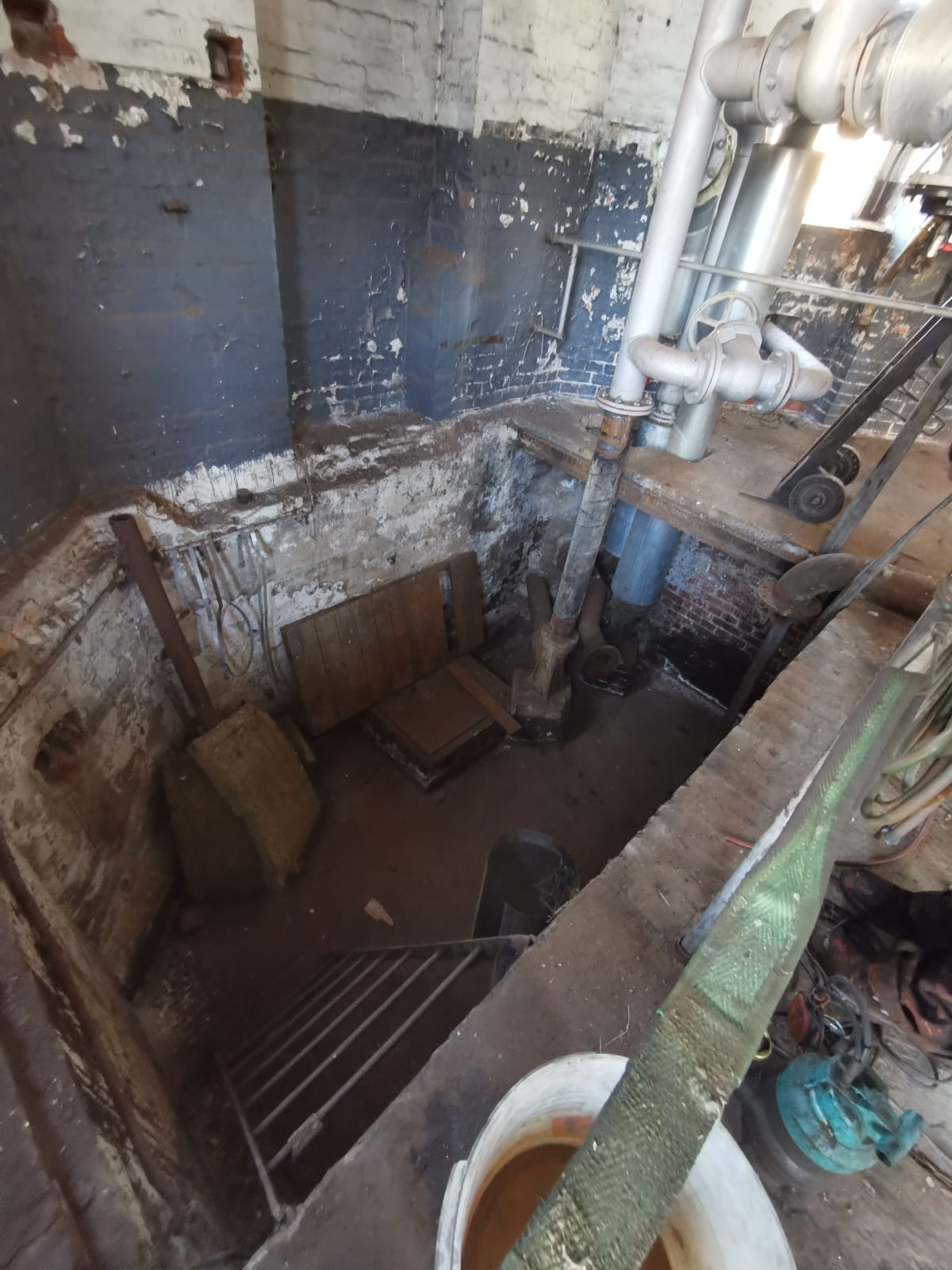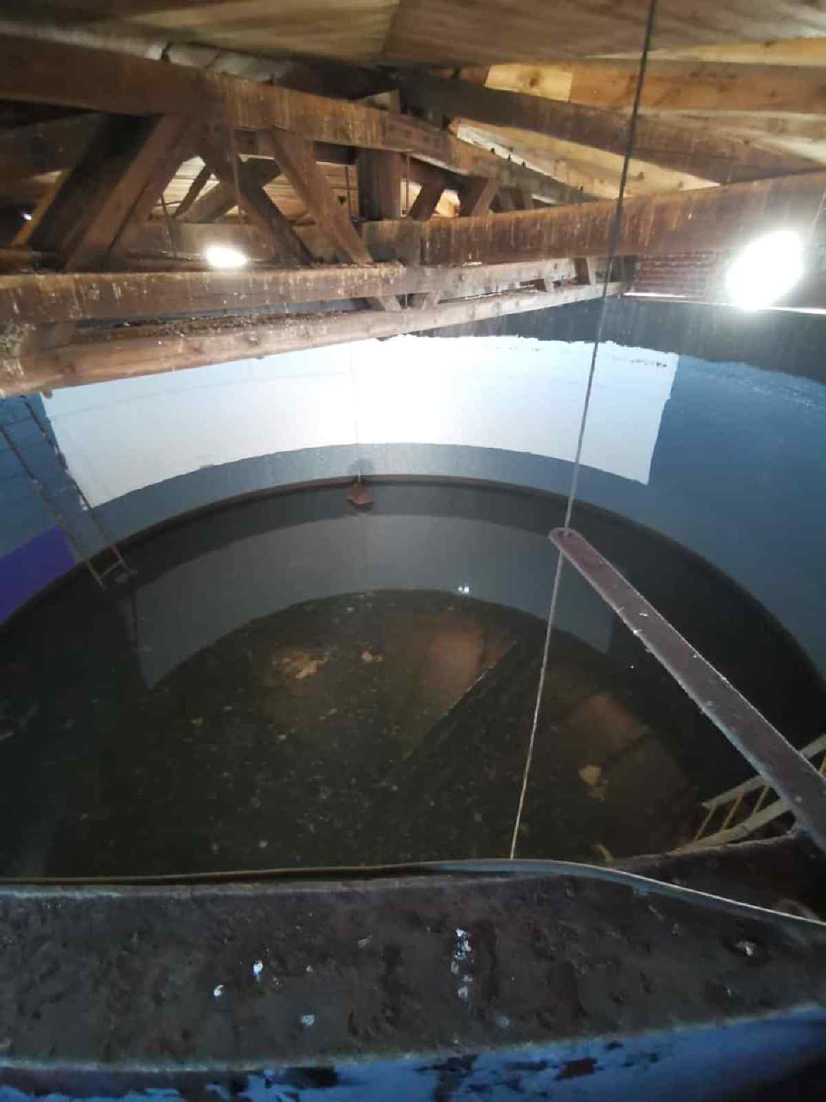 Above the false ceiling you reach the storage tank. Another staircase leads up to the top of the tank.