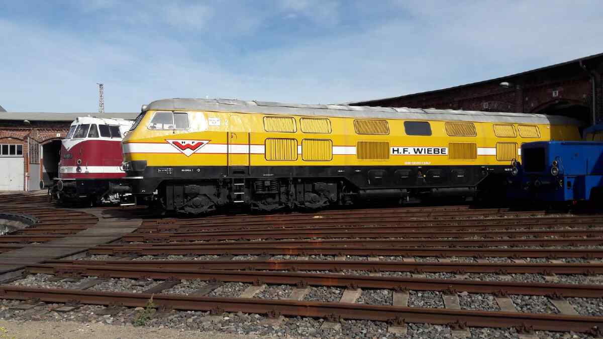 In addition, in the medium term, another locomotive is to be brought back to life, for which the fans have been waiting for a long time. This is 320 001, a large diesel locomotive built by Krauss-Maffei in Munich that was used as a prototype by the German Federal Railroad in the 1960s and 1970s. It was then used by various private railroads in Germany and Italy in freight service. Most recently, it served the H.F. Wiebe in construction train service. It has an output of 3,800 hp from two engines and was formerly capable of 160 km/h, latterly still 120 km/h. It is the largest diesel locomotive ever built in Germany.