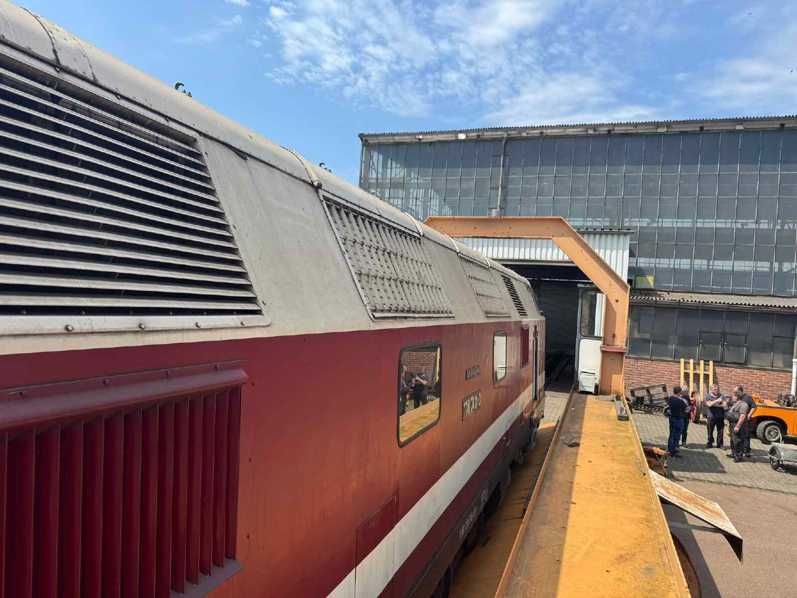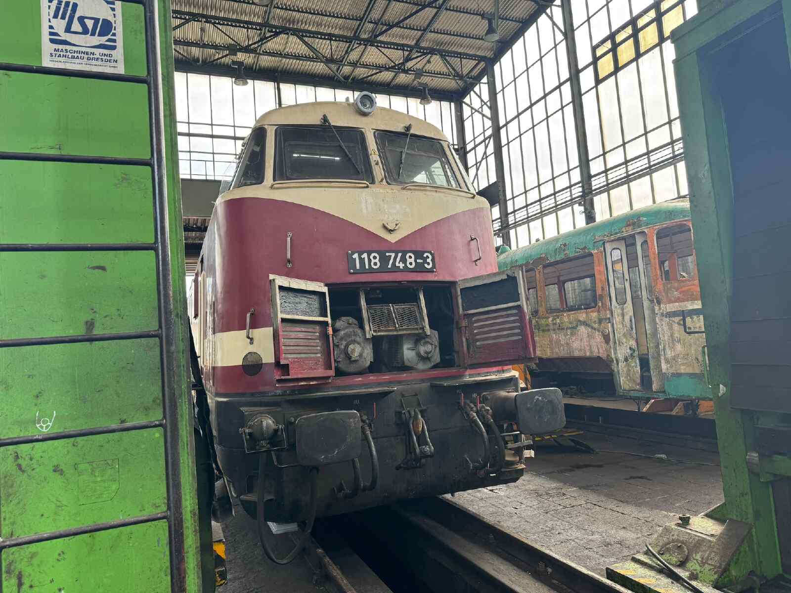 https://hamburg-berlin.deutschebahn.com/home.html. Now let's move on to the activities in the museum and its vehicles. During the last event, some visitors asked where our diesel locomotive 118 748 was. The answer is that it is still in a contractor's workshop where a general inspection is being carried out. The relevant work is almost complete, the locomotive is back on its own wheels and the engines are running. Remaining work is currently being carried out, such as the installation of a modern radio system. This is a prerequisite for using the locomotive on public tracks.
