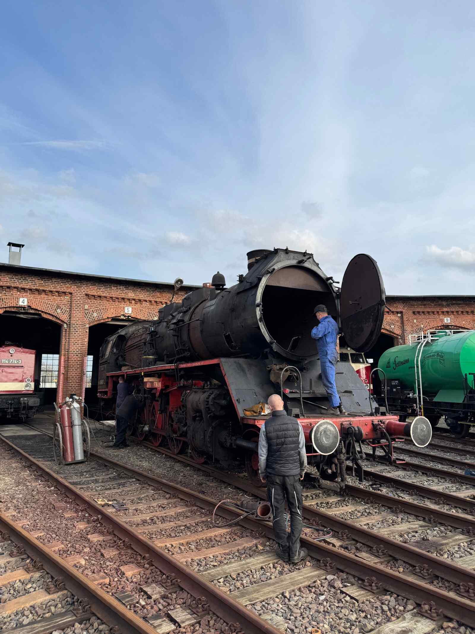 At the end of the 1950s, our locomotive was reconstructed at the Stendal repair workshop and has since been numbered 50 3682. It belonged to the Deutsche Reichsbahn until March 1993 and was then acquired by a fellow member of our association. We were able to keep it operational until 2019. However, the condition of its boiler then forced us to take it out of service. Unfortunately, the thickness of the material no longer allowed for safe operation.