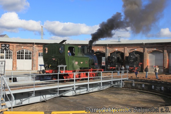 Dampflok Emma auf der Drehscheibe im Bahnbetriebswerk Wittenberge