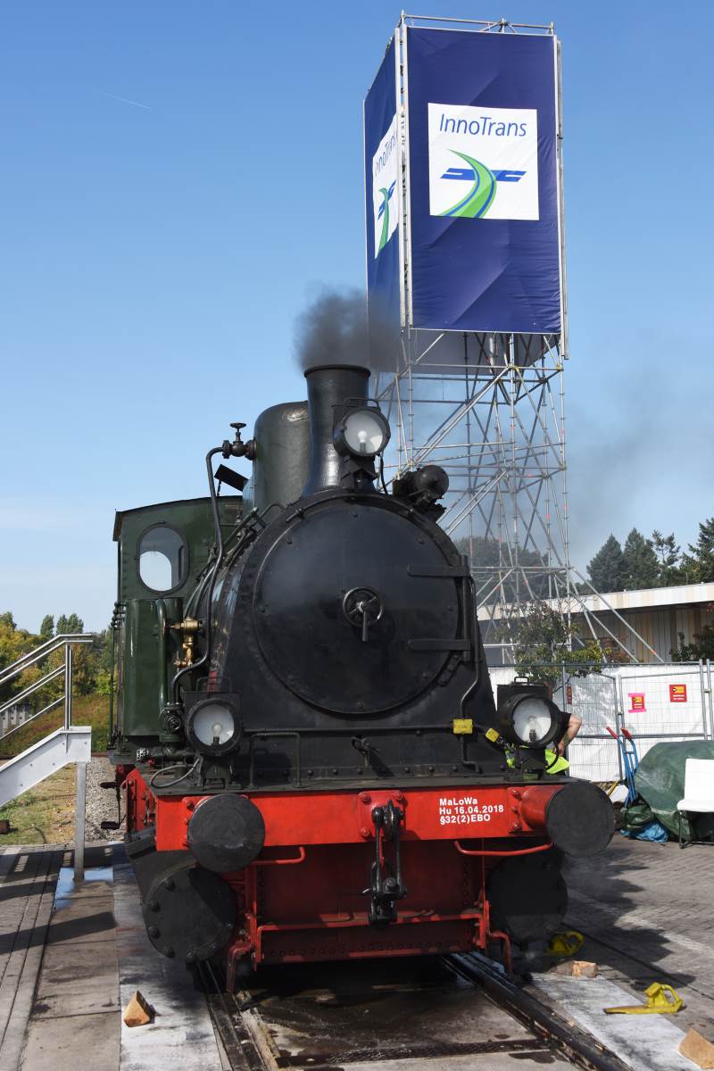 Our steam loco "EMMA" is without any doubt one of the stars of InnoTrans, the largest international exhibition for railway technology. After arrival of the machine without incident at the exhibition grounds, on Monday September 17, 2018, members of the Historischer Lokschuppen Wittenberge prepared her for her duties at InnoTrans. The next day, the exhibition opened its doors for the trade visitors. Countless visitors from all over the world took the once in a lifetime opportunity to take a ride in the cab of a steam locomotive. The loco is always surrounded by a throng of people and the members had their hands full the whole time. On September 22 and 23, the exhibition is open to the general public. On these days too, there is the chance to take a trip in the driver's cab of "EMMA", before she heads for home in Wittenberge next week.