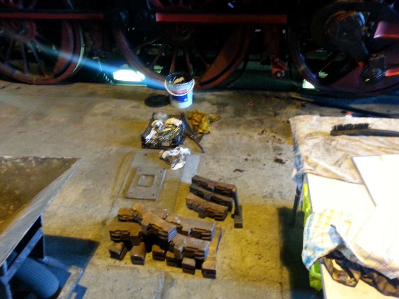 On the steam loco, the brake blocks are currently being changed.