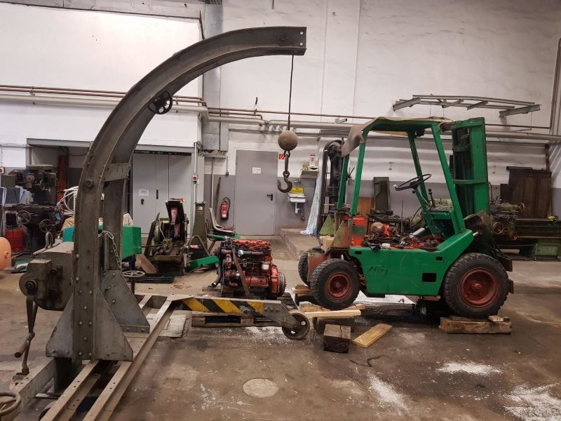 And also the other tools need a little tender loving care. As our forklift has recently sprung more and more leaks, the engine was removed and overhauled. Now that the overhaul has been completed, we "only" have to install it.