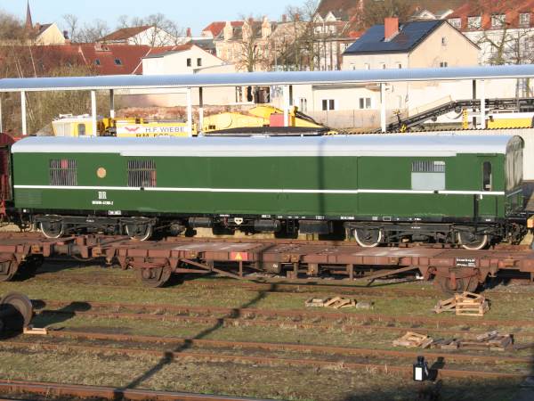 Wagen AutotransportwaggonIn unserem Besitz befindet sich der Autotransportwagen aus dem 1. Regierungszug der ehemaligen DDR. Der zuletzt als 60 50 99-54 679-4 bezeichnete Waggon wurde durch uns im Januar 2006 in letzter Sekunde vor der Verschrottung gerettet. Der ehemalige Pw4ü-30 (Gotha, 1930) überdauerte zuletzt als Bahndienstwagen im Leipziger Hilfszug die Zeit und kam erst 2004 nach Wittenberge ins ehemalige Raw.