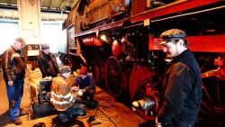 Schweiß lief auch bei weiteren Arbeiten an der Dampflok 50 3570. Hier wurde ein aufgearbeitetes Abschlammventil unter dem Kessel montiert und Wasserstandsanzeigen im Führerstand angeschraubt.