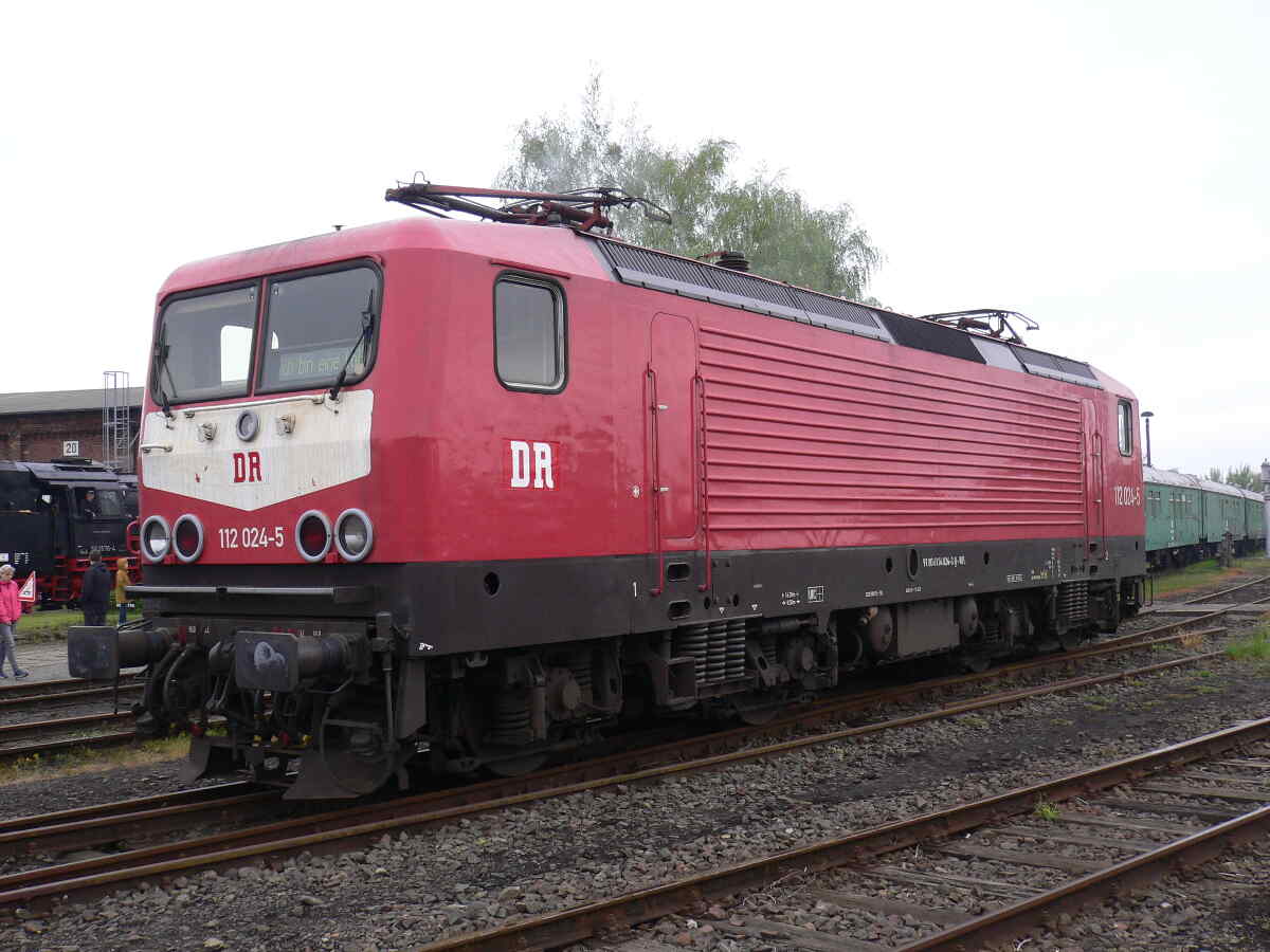 Am Freitag wurden die Fahrzeuge aus dem Museumsbestand sowie zwei Gastlokomotiven in eine fotogerechte Position gebracht. Wir danken der Firma WFL, dass wir die Ellok 112 024 und die Diesellok 231 012 ausstellen durften. Bei der erstgenannten handelt es sich um eine Elektrolok der letzten DDR-Generation, die für eine Höchstgeschwindigkeit von 160 km/h ausgelegt ist. Sie und ihre Schwestern befördern auch heute noch Personenzüge auf dem Netz der Deutschen Bahn AG.