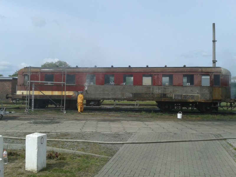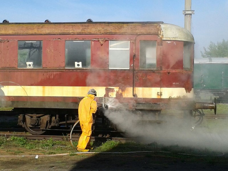 Am 29.05.2015 wurde der Beiwagen 197 805-5 von den Aktiven des Vereins gesandstrahlt und anschließend grundiert.
