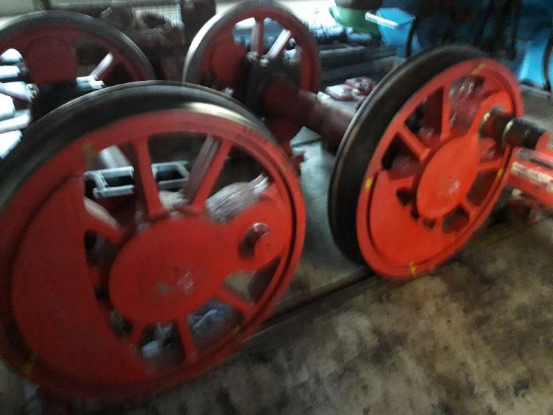 Am 10.12.2017 schickten wir sie daher im Schlepp einer Diesellok auf die Reise nach Neustrelitz, wo es eine sogenannte Unterflur-Radsatzdrehbank gibt. Hier wird die ganze Lok auf die Drehbank gefahren und ihre Räder werden im eingebauten Zustand von starken Elektromotoren der Drehbank gedreht. Dann wird ein Drehmeißel an die Räder gefahren und so lange Metallschichten von den Laufflächen der Räder abgetragen, bis das Profil wieder stimmt. Die Bilder zeigen die Überführung der Dampflok in Glashütte und Pritzwalk und das Video den Betrieb auf der Drehbank.