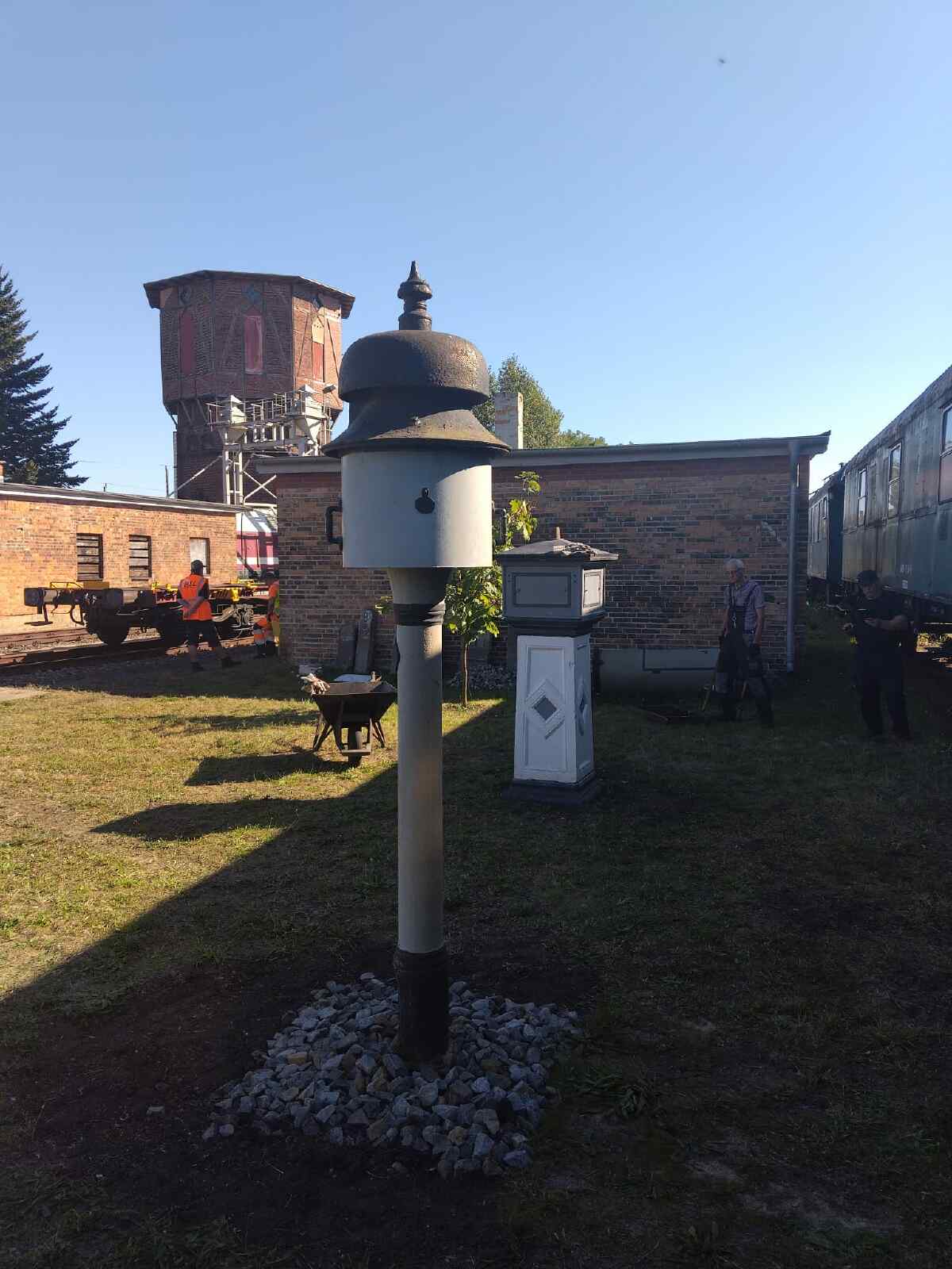 Heute können wir auch über eine weitere kleine Sensation berichten. Zwar ist leider der bekannte Stendaler Fachbuchautor und Eisenbahnliebhaber Wolfgang List vor einiger Zeit verstorben. Wir konnten uns aber mit der Familie dahingehend verständigen, dass unser Museum die umfangreiche Sammlung von Läutewerken übernimmt und ausstellt. Dabei handelt es sich um diverse, teilweise telefonzellengroße Geräte, die vor der Digitalisierung der Eisenbahn der Meldung von ankommenden und abgehenden Zügen per Morsezeichen dienten. Wolfgang List hatte solche Anlagen aus etlichen Teilen Deutschlands vor der Verschrottung bewahrt und in seiner Privatsammlung funktionsfähig restauriert. Nun bekommen die Teile in Wittenberge ihren würdigen Platz. Wir danken den Angehörigen noch einmal sehr herzlich für ihre Bereitschaft, uns die Sammlung zu übergeben. Wir haben vor einigen Tagen mit der Aufstellung der großen Ausstellungsstücke in unserem Freigelände begonnen.
