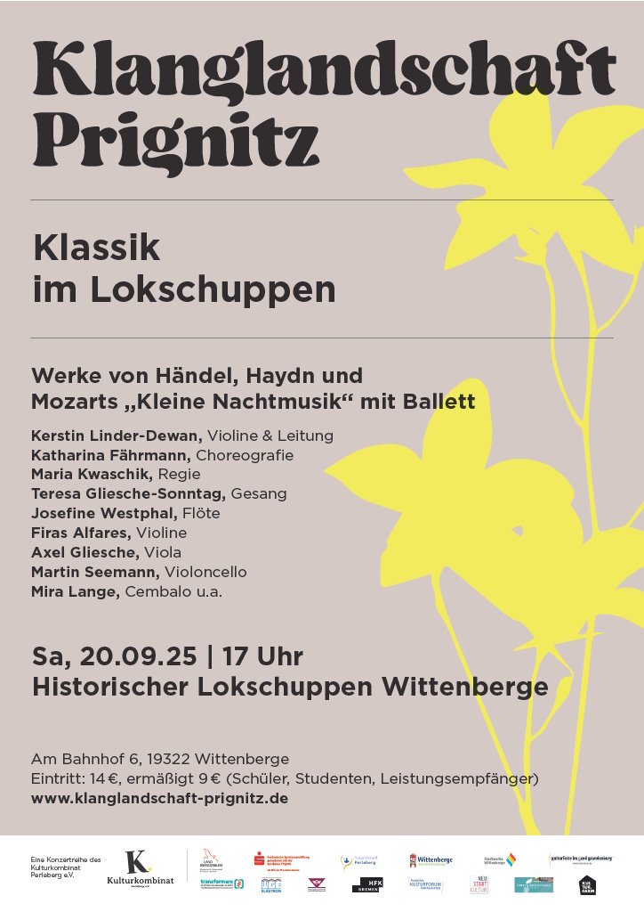 Sie können sich die Neuerungen zeitnah ansehen. Am Samstag, den 20. September, wird bundesweit der "Tag der Schiene begangen", an dem viele Eisenbahnunternehmen und -museen ihre Arbeit vorstellen. So werden auch wir an diesem Tag zwischen 10 und 16 Uhr für Sie zur Verfügung stehen. Ab 17 Uhr findet ein Konzert im Lokschuppen statt, das Ihnen klassische Musik in Form von Werken von Händel, Haydn und Mozart kredenzt. Zum ersten Mal wird in diesem Rahmen die besondere Kulisse des Lokschuppens auch für einen Programmbeitrag der Ballettgruppe der Kreismusikschule genutzt. Der Eintritt für das Konzert kostet 14 Euro, ermäßigt 9 Euro (Schüler, Studenten, Leistungsempfänger). Nähere Informationen finden Sie auch unter https://www.klanglandschaft-prignitz.de . Am ersten Oktober-Wochenende findet unsere Veranstaltung Herbstdampf statt. Am 4. und 5. Oktober lassen wir wieder die Herzen aller großen und kleinen Eisenbahnfans höherschlagen, wenn unsere historischen Fahrzeuge wieder in Aktion zu sehen sind.