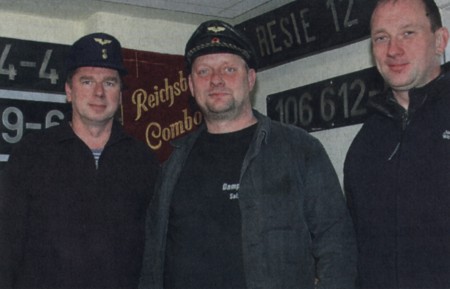 Thomas Koberstein (von links). Rocco Kadow und Maik Koslowski präsentierten historische Lokschilder. |
