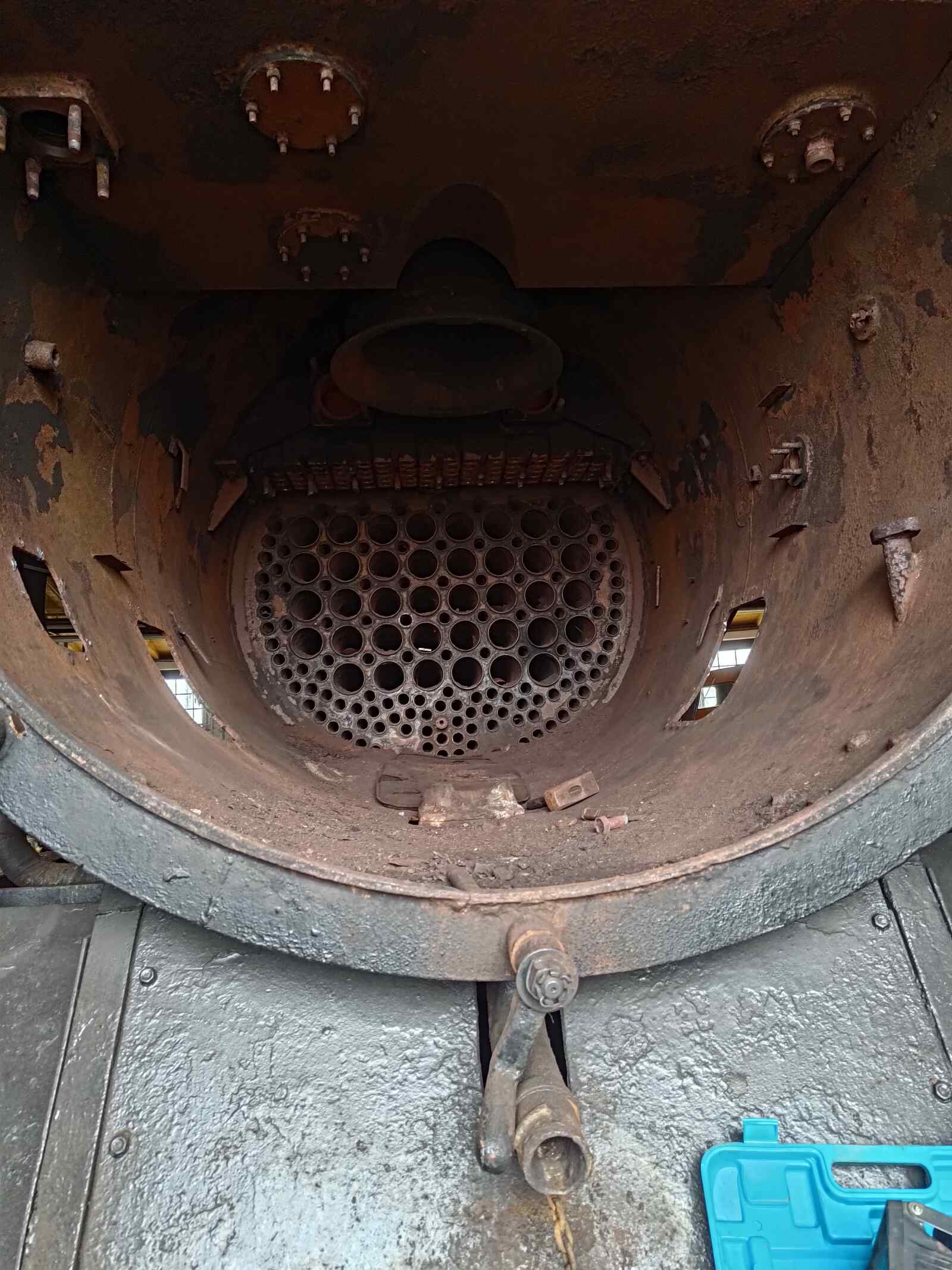 Damit sich der Kessel innen in einem optisch guten Zustand für den Prüfer präsentierte und dieser alles genau in Augenschein nehmen konnte, war eine Menge „Drecksarbeit“ notwendig. Dazu gehörte, durch das Mannloch in den Kessel zu steigen und die 1500 Stehbolzen, die durch festgebackene Asche und Staub verstopft waren, wieder freizubohren. Das kostete einen halben Tag, und die Arbeiten mussten unter Gehörschutz erfolgen, vom herumfliegenden Schmutz ganz zu schweigen.