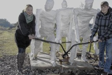 "Ganze Familien unserer Stadt haben mit der Bahn, von der Bahn und für die Bahn gelebt", betonte Wolfgang Strutz, Vorsitzender der Stadtverordnetenversammlung, in seinen Grußworten und wünschte dem Verein weiterhin viel Erfolg dabei, das Andenken an diese Zeit zu bewahren. Um auch jenen, die diese Entwicklung möglich machten, den Gleisbauern, ein Denkmal zu setzen, folgte die Enthüllung einer Figurengruppe. Diese haben Schüler des Curie-Gymnasiums in ihrer Projektwoche unter Anleitung des Müggendorfer Künstlers Guntram Kretschmar angefertigt, um damit historische Gleisbauwerkzeuge aus dem Bestand des Vereins in Szene zu setzen und zu zeigen, mit welch schwerer körperlicher Arbeit in Wittenberger Eisenbahngeschichte geschrieben wurde.